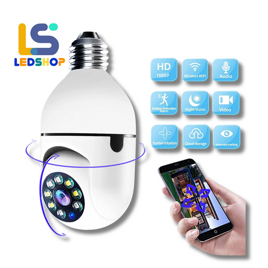 CAMARA DE SEGURIDAD ESTILO FOCO CON LAMPARA LED