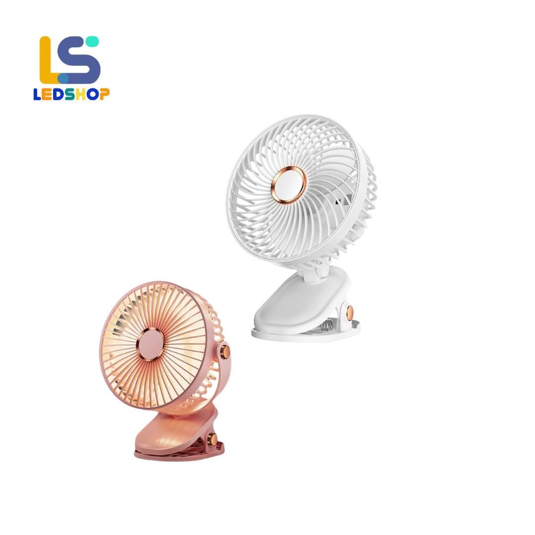 El objeto es un mini ventilador portátil con clip y de escritorio.